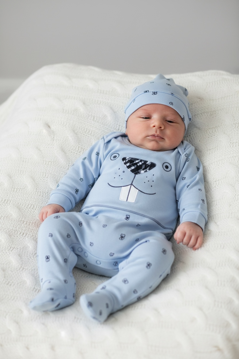 Baby-Overall mit Füßen und Mütze – 100 % Baumwolle (3–9 Monate)