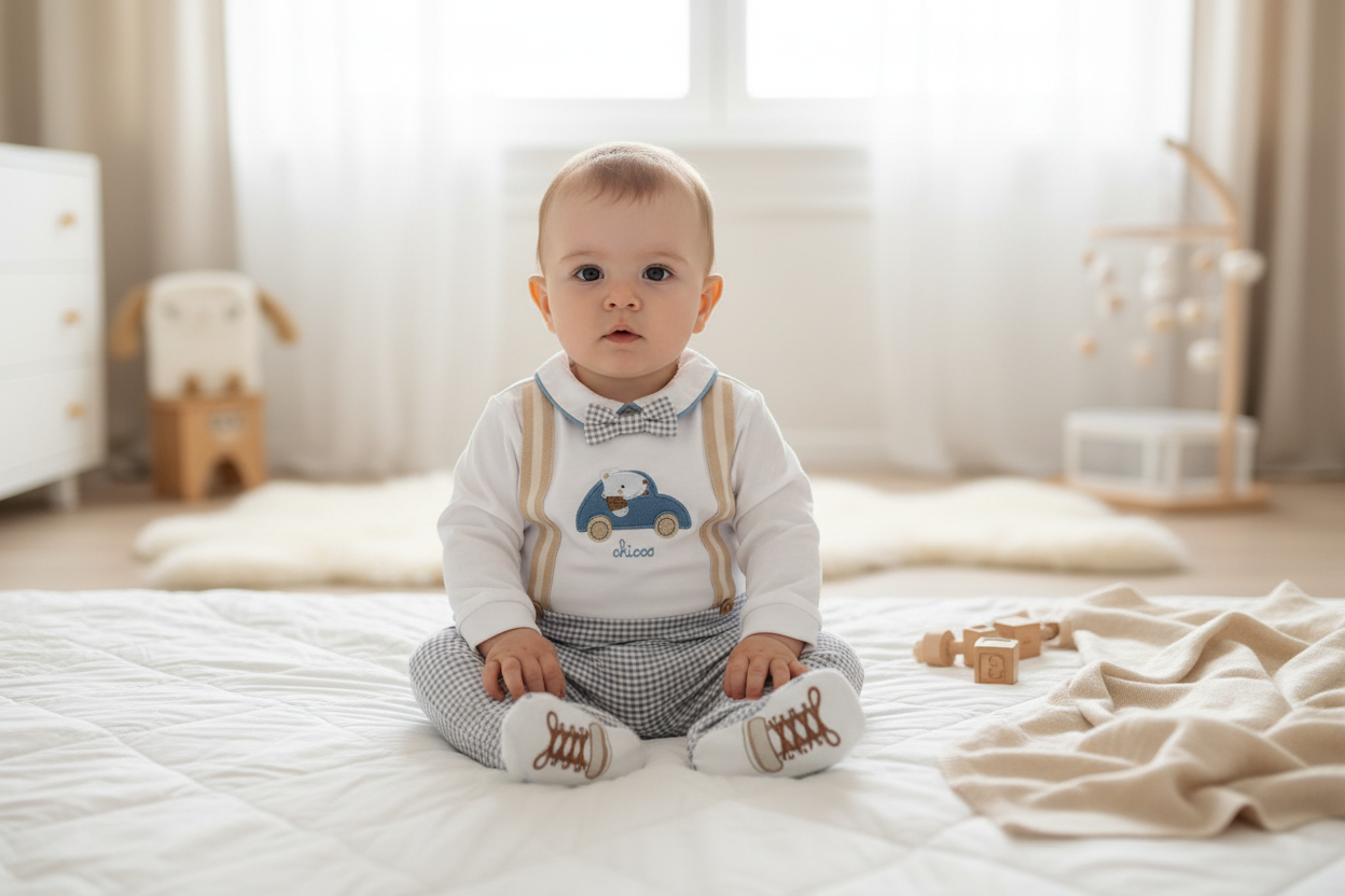 Der Chicco Body mit Beinen aus der Kollektion „My First Chicco“ ist ein eleganter Einteiler für Babys, ideal für einen schicken Look ohne zusätzliche Lagen. Er besteht aus 95 % Baumwolle und 5 % Elastan und bietet Weichheit, Atmungsaktivität und leichte Elastizität für optimale Bewegungsfreiheit. Das Design mit Auto-Print , optischen Hosenträgern und Schleife wirkt wie ein Mini-Outfit, während die geschlossenen Füße für Wärme und Stabilität sorgen. Dank des Druckknopfverschlusses am Rücken lässt sich der Body schnell an- und ausziehen sowie wickeln.