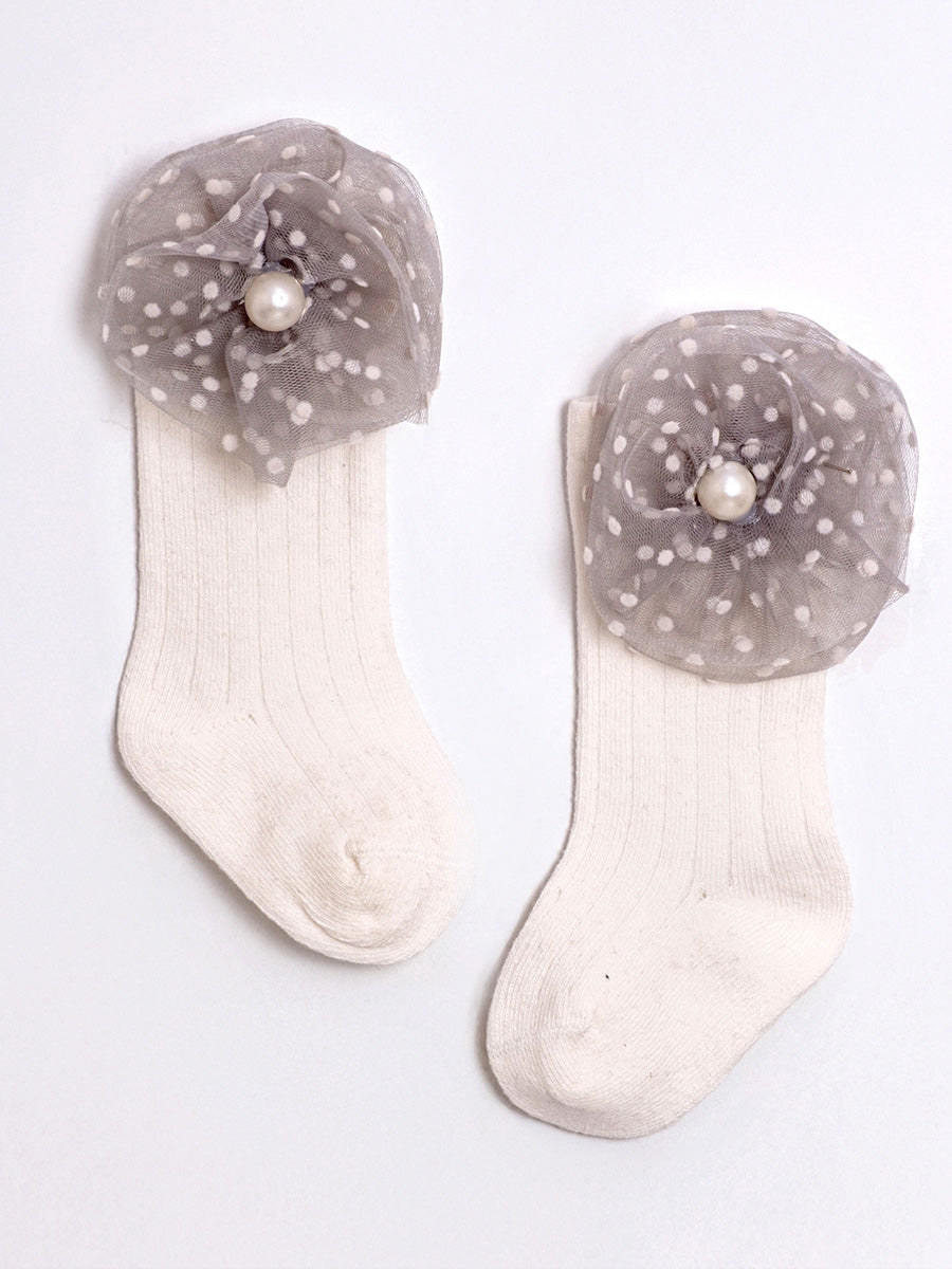 Produktname: Girl's Gray Polka Dot Tulle Pearl Embellished Socks