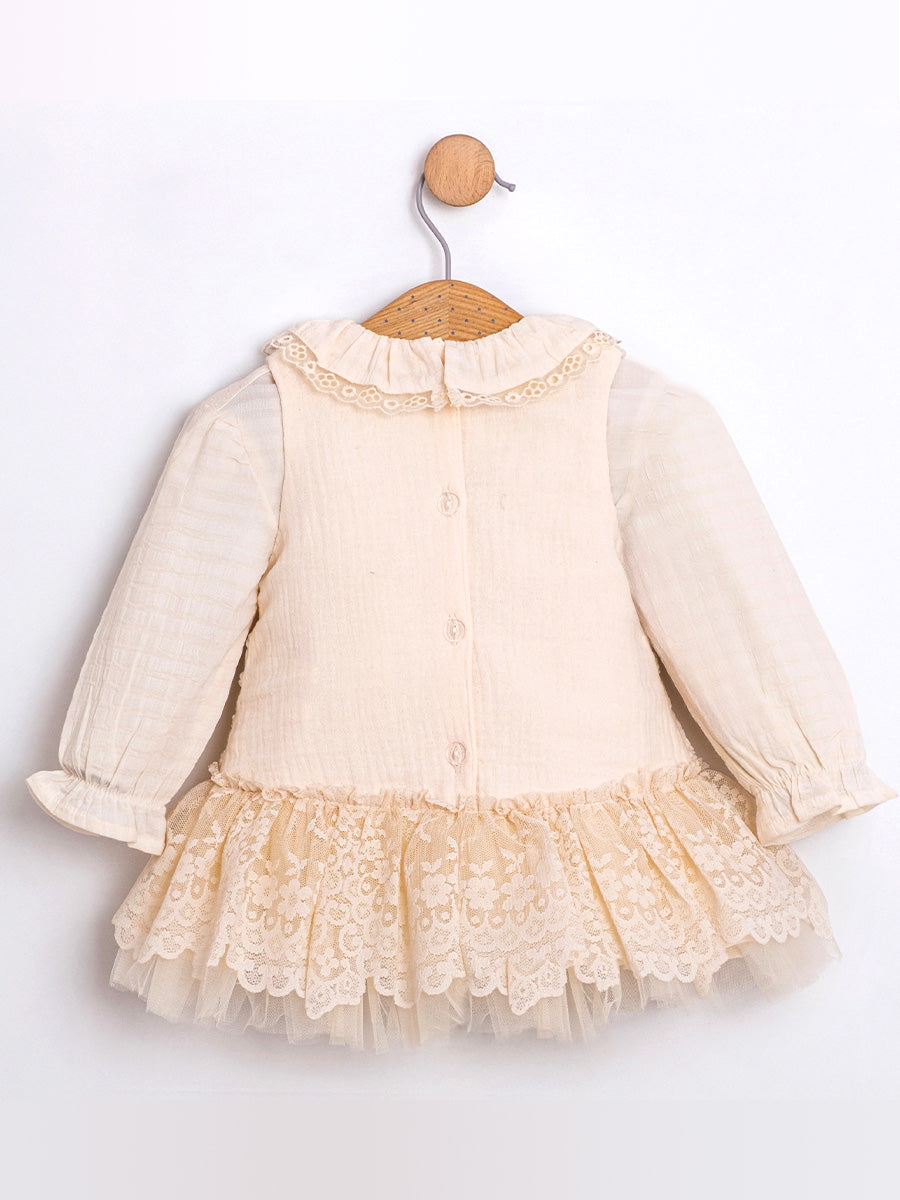 Das Cumino MJ188 Baby zweiteiliges Set ist ein elegantes und zartes Outfit für kleine Mädchen, das für besondere Anlässe, Familienfeiern und festliche Momente konzipiert wurde. Das Set besteht aus einem ärmellosen Kleid und einer langärmeligen Bluse und schafft ein raffiniertes und harmonisches Outfit mit vielen romantischen Details.