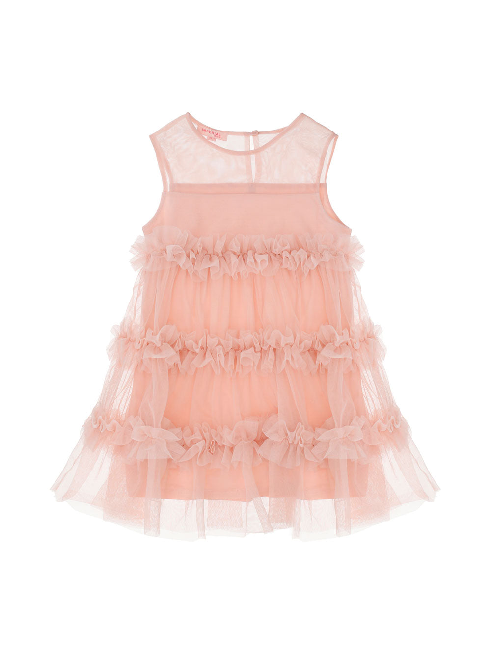 Das romantische Imperial Kinderkleid im zarten Farbton Dancing Rose ist die perfekte Wahl für festliche Anlässe und besondere Momente. Das Modell ist aus leichtem Tüll gefertigt, der dem Kleid einen luftigen, märchenhaften Look verleiht. Das Oberteil hat eine elegante transparente Schicht, während der Rock von mehrlagigen Rüschen geziert wird, die ein reiches Volumen und eine verspielte Silhouette schaffen.