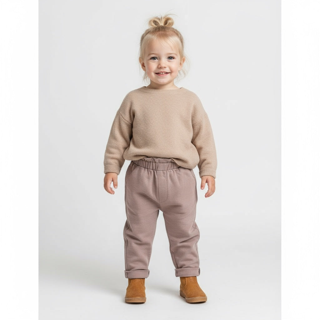 Sie sind in 2 neutralen Farben erhältlich, die sich leicht mit verschiedenen T-Shirts, Pullovern und Jacken kombinieren lassen. Die Hosen sind in Größen für Kinder von 1 bis 6 Jahren erhältlich und bieten somit die perfekte Wahl für verschiedene Altersgruppen und Stile.