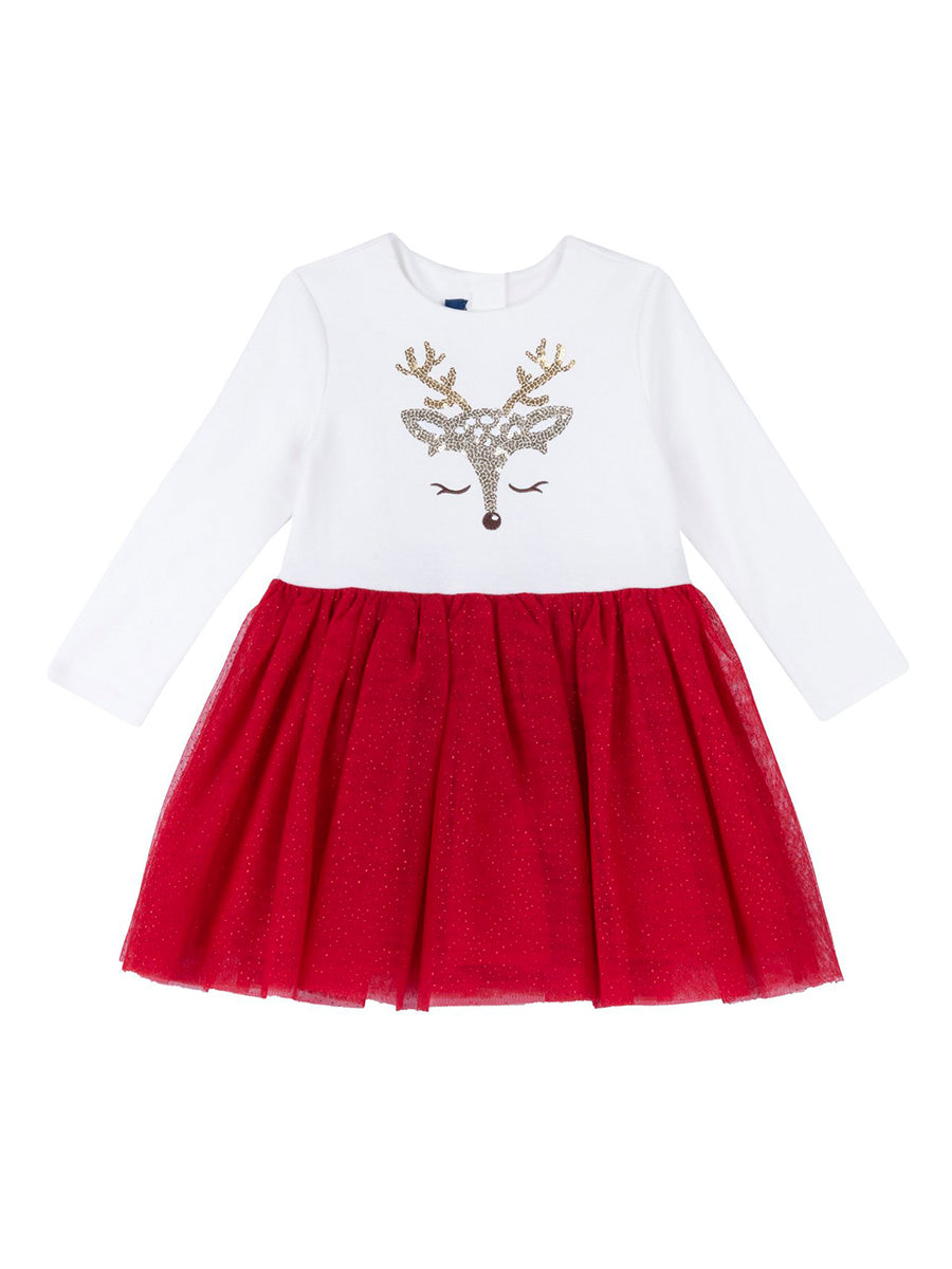 Chicco božićna haljina za djevojčice i bebe kombinira ugodu nošenja i svečani izgled – idealna kao outfit za blagdane i kao poklon. Izrađena je od toplog, mekog materijala, s bogatom suknjom od crvenog tila koja daje izrazito svečani, „party“ efekt.
