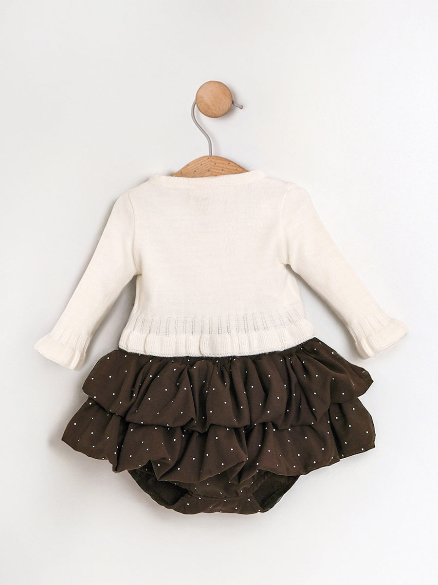 The perfect set for colder days, which comes with three cozy pieces: a soft cotton top, a warm acrylic bolero, and shorts made from a combination of CMD and REPES materials. Created with love for fall and winter, in vibrant colors. Ideal for babies who are constantly active — it's easy to put on, comfortable to wear, and looks great.