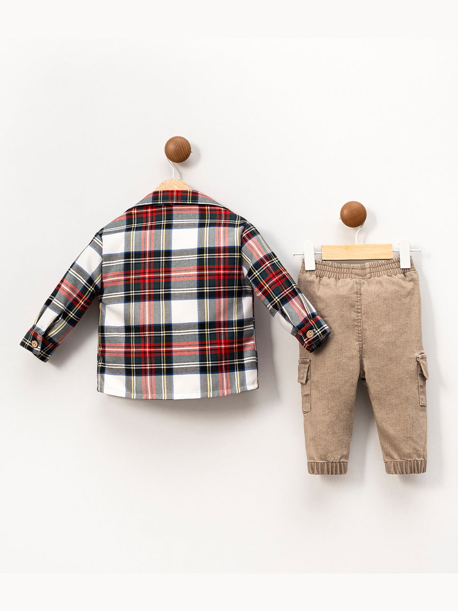 A comfortable and functional three-piece set for the colder season: a cotton T-shirt and shirt for softness against the skin, along with trousers with a comfortable fit and a sustainable fiber mix. Designed for everyday wear and quick combinatorics — pragmatic choice for parents looking for value and style in one.