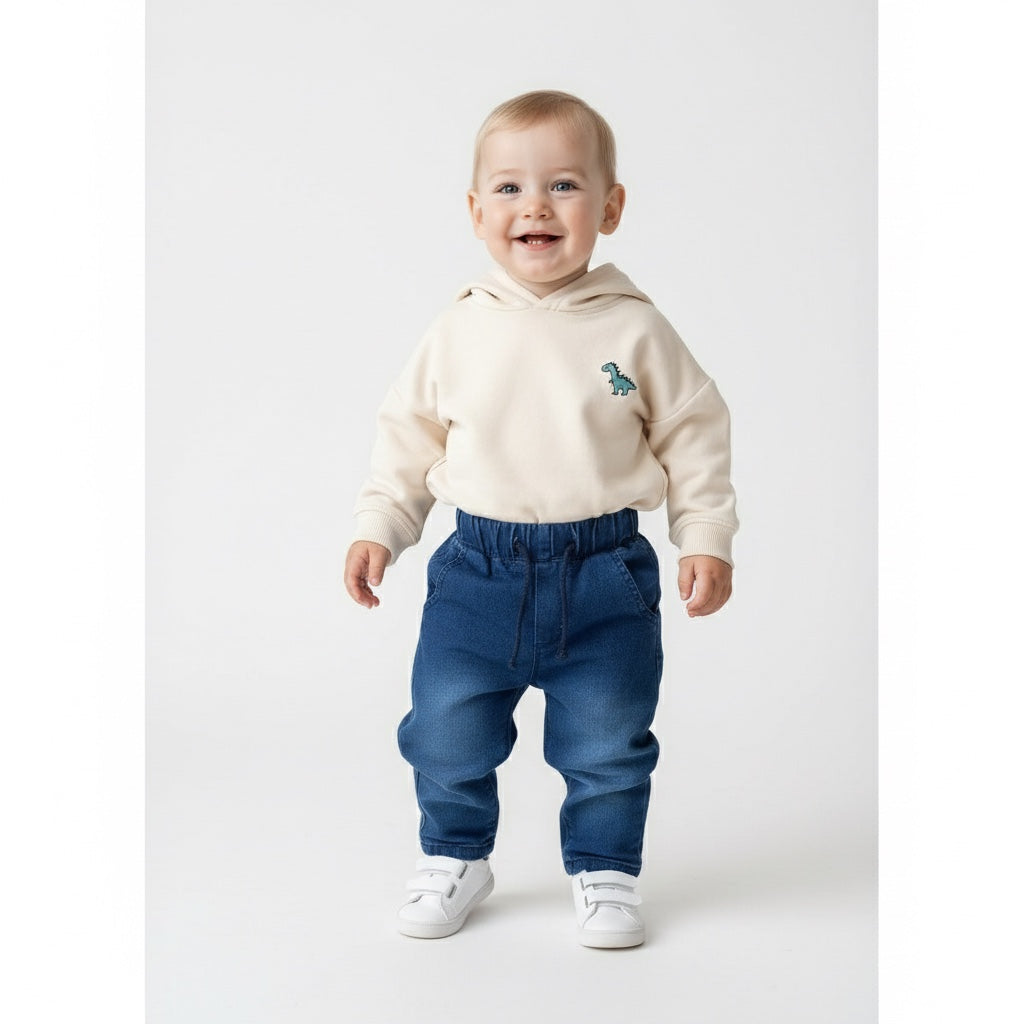 Get these adorable navy blue elastic pants for your little ones in our online children's shop. Our collection of comfortable and practical children's clothing includes these pants with an elastic waistband, which will ensure that your baby is comfortable all day long. These pretty pants are perfect for playing and walking and will match any top outfit.