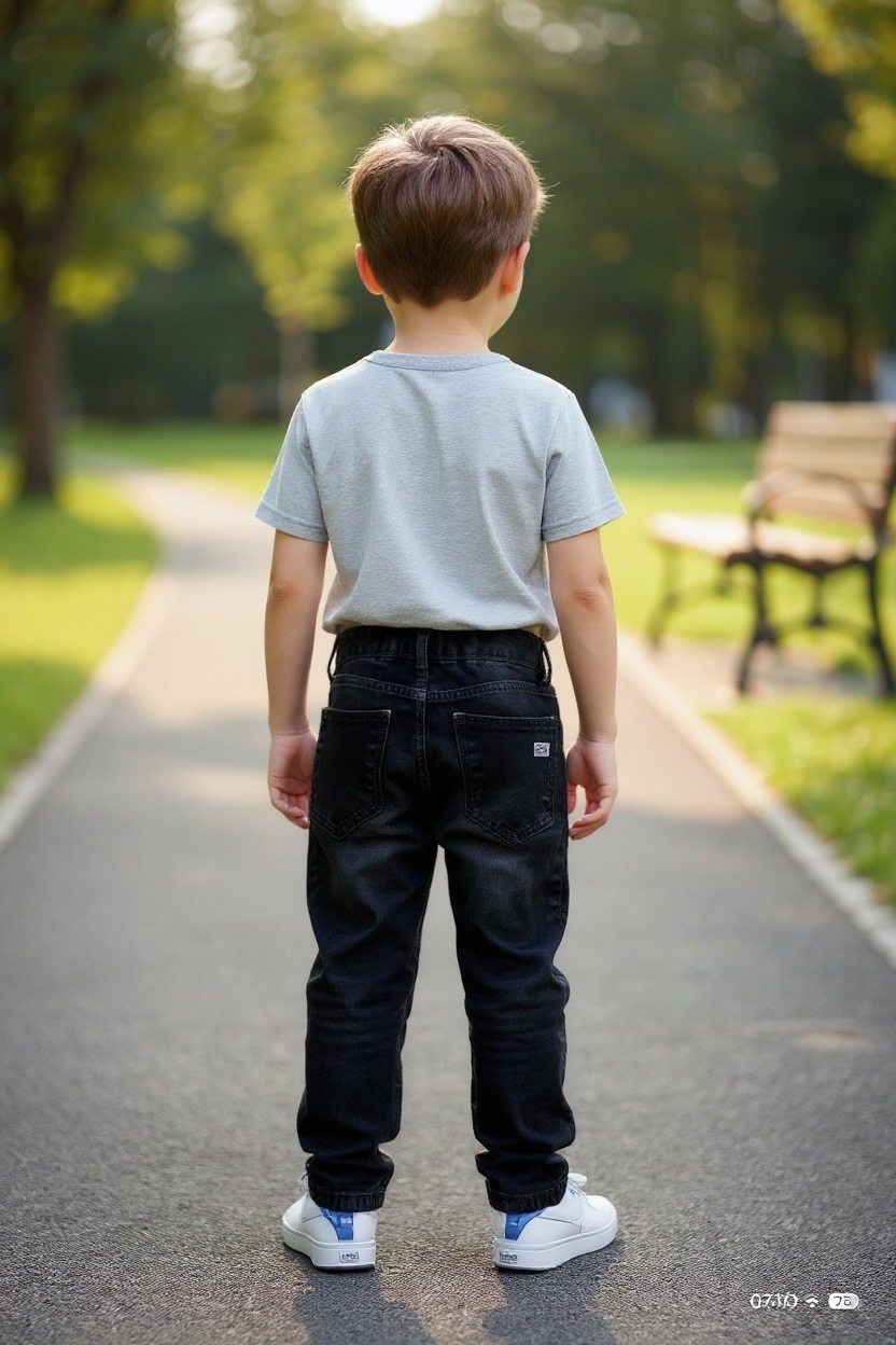Modern boys' trousers with a dark denim look, made of comfortable and durable material. The composition of 98% cotton and 2% elastane ensures comfort and slight stretch for freedom of movement. The trousers have an elastic waistband for a perfect fit without the need for a belt and practical large pockets for additional functionality. The pocket has a discreet motif, adding a unique detail to the design. An ideal choice for everyday activities and a relaxed, trendy look.