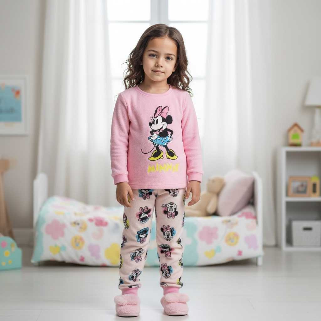 Fill the winter season with joy with the Minnie Mouse fleece pajamas for girls, available in sizes 98 to 128. This extremely soft and warm set is perfect for colder nights, keeping your little ones comfortably warm.