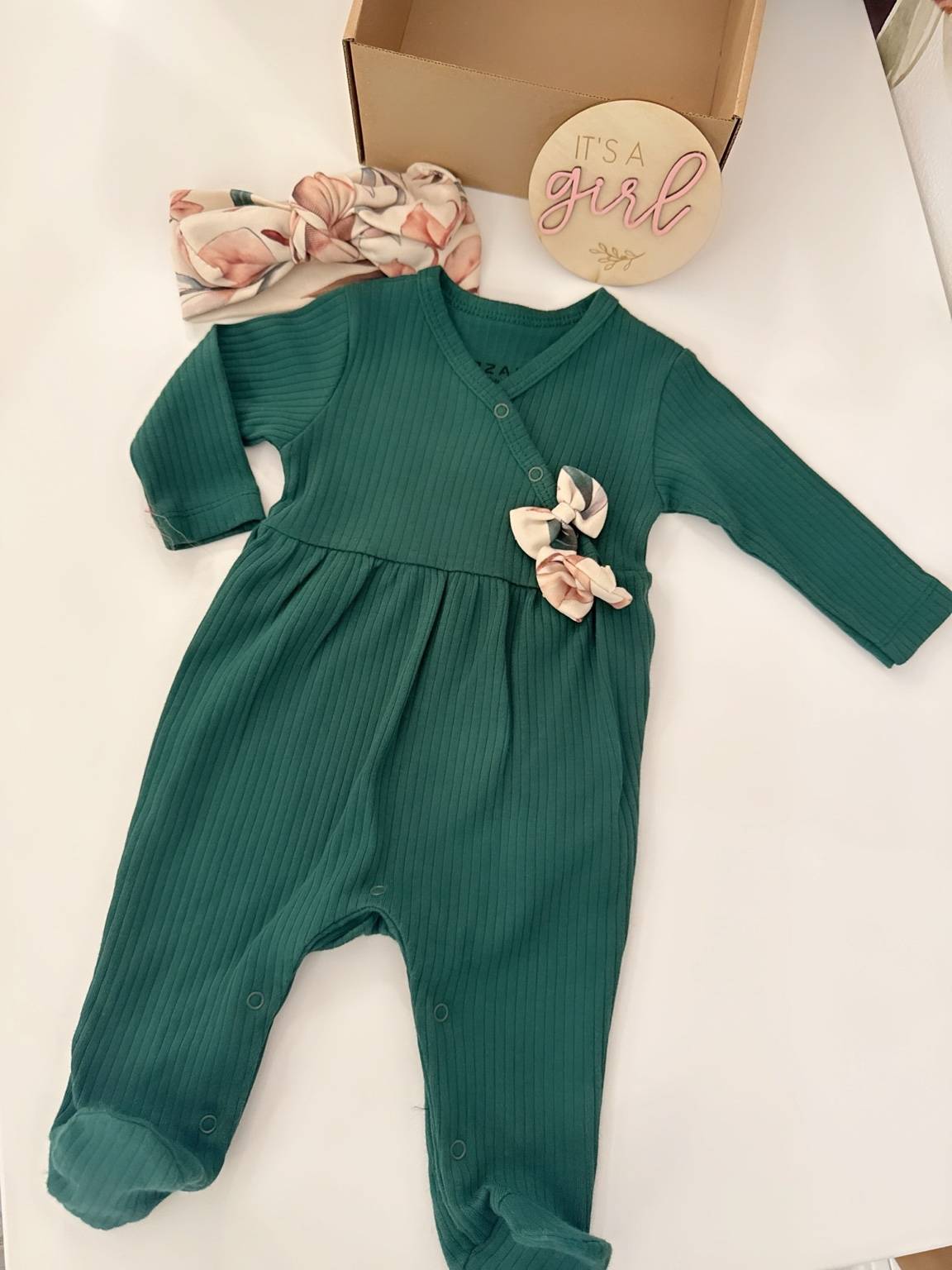 Baby set za djevojčice – zeleni kombinezon s mašnama | Veličina 56 (0–3 mj.)