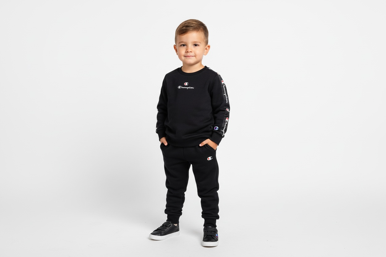 Champion “Retro Sport Crewneck Suit” je praktičan set za djecu (unisex) koji kombinira udobnost i sportsku estetiku. Gornji dio je dukserica s okruglim izrezom (crew neck) i dugim rukavima, dok donji dio ima normalan struk i elastičan pojas za ugodno pristajanje i lakše oblačenje. Materijalna mješavina pamuka i poliestera osigurava dobru nosivost i jednostavno održavanje.