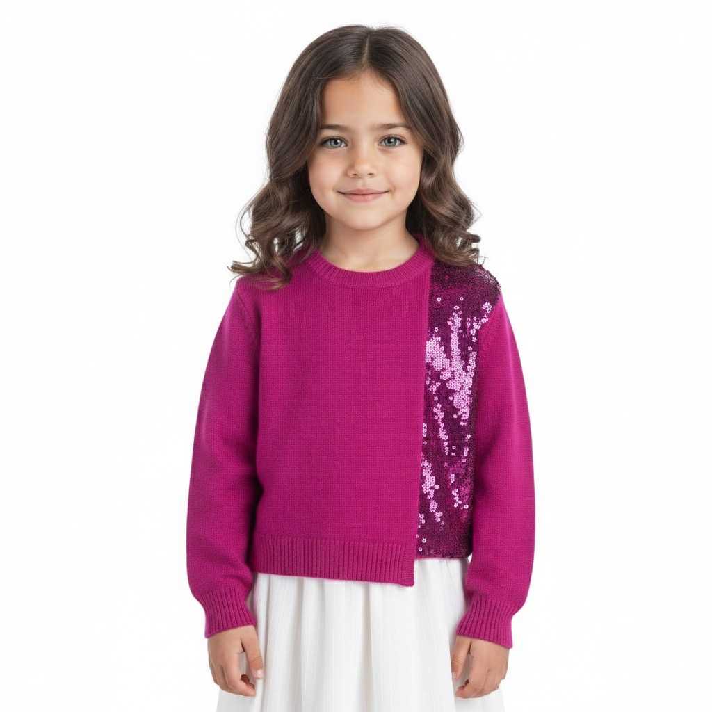 Dizajniran s rebrastim manžetama i donjim rubom, ovaj džemper je prilagodljiv i lako se kombinira s različitim stilovima. Bilo da ga nosi za školu, obiteljska okupljanja ili posebne prilike, vaša djevojčica će zasjati u ovom elegantnom komadu.
