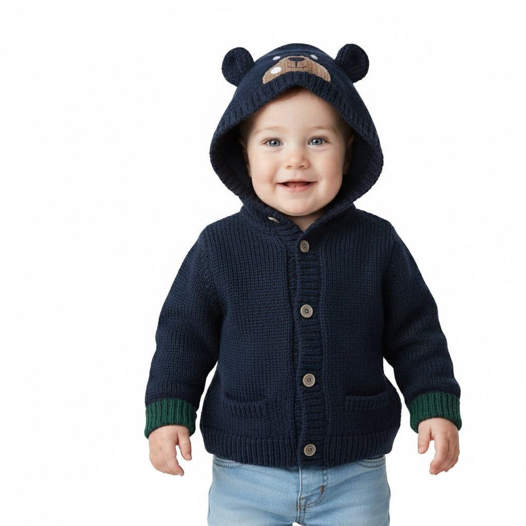 Tražite slatku i udobnu vestu za vašeg malog dečka? Chicco vesta za dječake s kapuljačom u obliku medvjeda je savršen izbor! Ova tamnoplava vesta se otvara i zatvara na gumbiće, što je čini praktičnom za svakodnevno nošenje. Kapuljača u obliku medvjeda dodaje dodatnu dozu simpatičnosti, a dečko će se osećati udobno i toplo tokom hladnih dana. Sa Chicco brendom možete biti sigurni da je kvalitet proizvoda na visokom nivou, a vaš mali dečko će izgledati preslatko u ovoj vesti. Ne propustite priliku da uparite ovu vestu sa ponudom dana, bež hlačama i gležnjačama i stvorite savršen outfit za vašeg mališana!