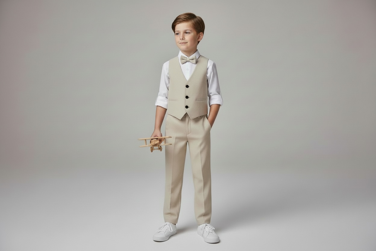 Podignite “dress code” na višu razinu s bezvremenskim bež svečanim odijelom za dječake. Set je idealan za vjenčanja, pričesti, krizme, krštenja, rođendane i sve prigode gdje želite uredan, premium izgled uz potpunu udobnost.