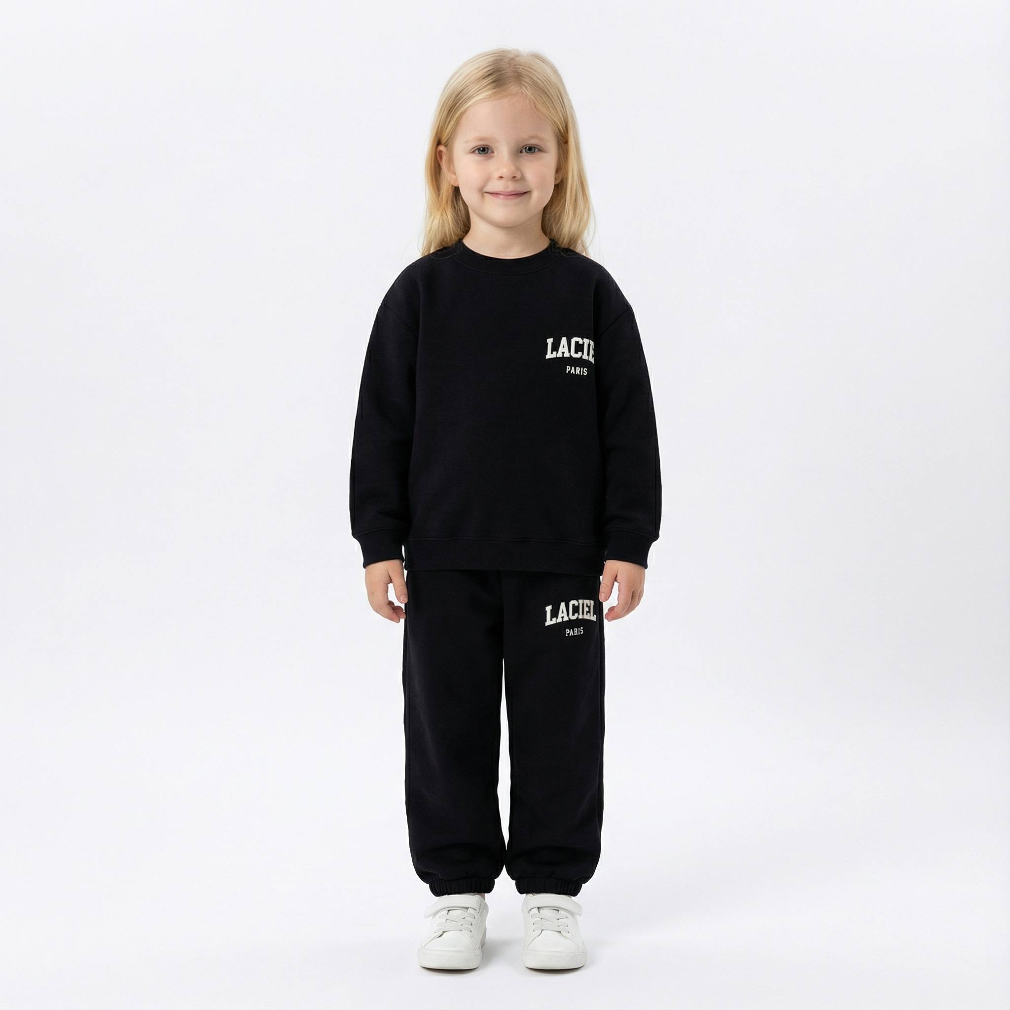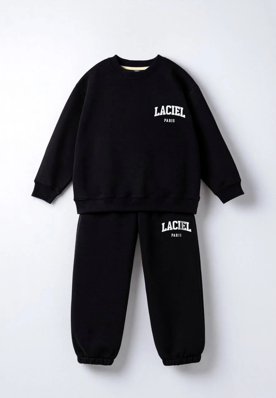 La’ciel Paris „Winter Club“ komplet trenirke donosi moderan, urbani dojam kroz opušteni kroj i brendirani izgled. Gornji dio je dukserica s okruglim izrezom i rebrastim rubovima, dok su hlače izvedene kao jogger model s elastičnim strukom i suženim nogavicama. Set je idealan za školu, slobodno vrijeme i putovanja – kada želite da dijete izgleda “sređeno”, a da se i dalje osjeća komforno.