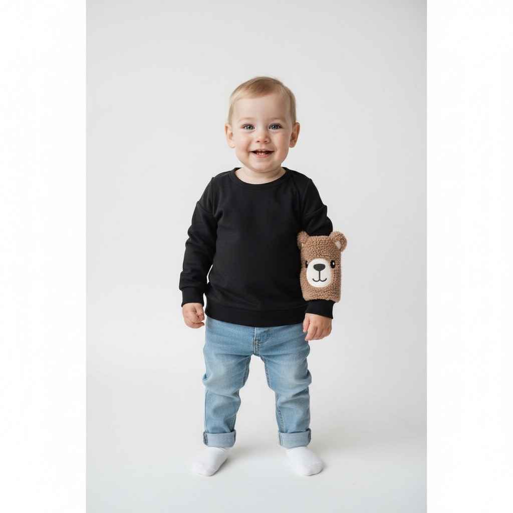 Ovaj preslatki pulover sa medom će odmah privući pažnju vaše male princeze ili princa. Sa interesantnim detaljem medovu glavu na lijevom rukavu, ovaj pulover će sigurno postati omiljeni komad garderobe. Izrađen od nježnog materijala koji je udoban za nošenje, ovaj pulover je savršen izbor za hladnije dane. Sa 65% pamuka i 35% poliester, on je i lako održavati. Neka vaše dijete uživa u udobnosti i šarmu ovog divnog pulovera sa medom. Možete izabrati između 3 boje: crne, sive i bež. Ova cijena je bez hlača!