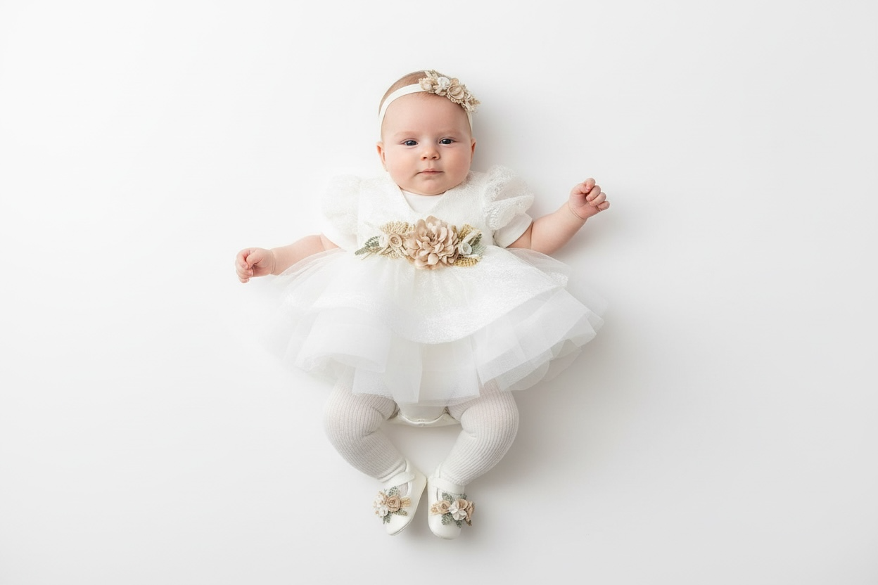 Upoznajte naš ekskluzivni 6-dijelni svečani set za krštenje "Bella", dizajniran s posebnom pažnjom za najvažnije trenutke u prvim mjesecima života. Ovaj komplet je idealan za krštenje, prvu fotografiju ili svečane prigode.