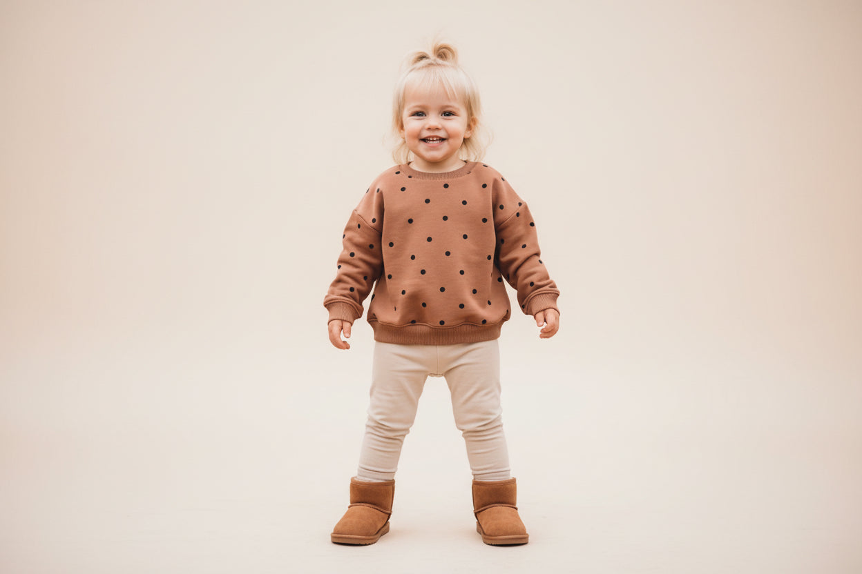 • Dizajn sweatshirt-a: Moderan i jednostavan s točkastim uzorkom, dolazi u nježno krem i toplo smeđim nijansama. Širok kroj osigurava slobodu pokreta.